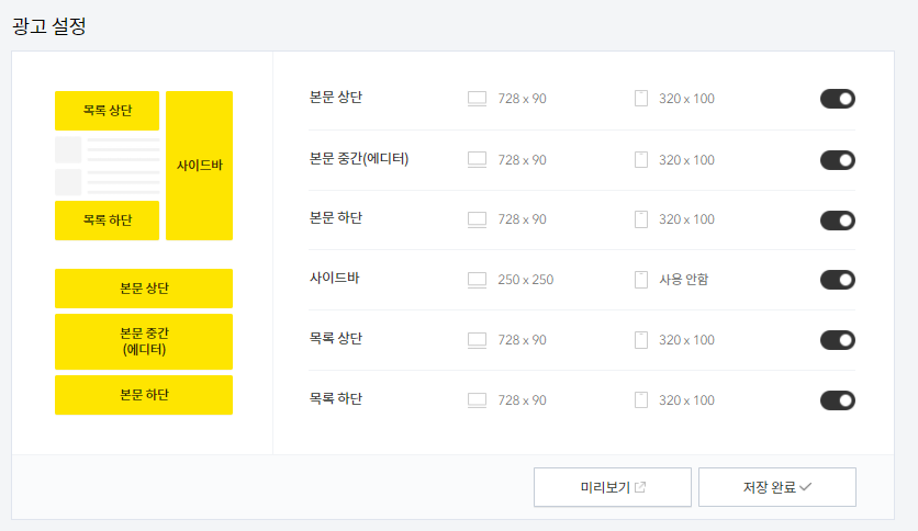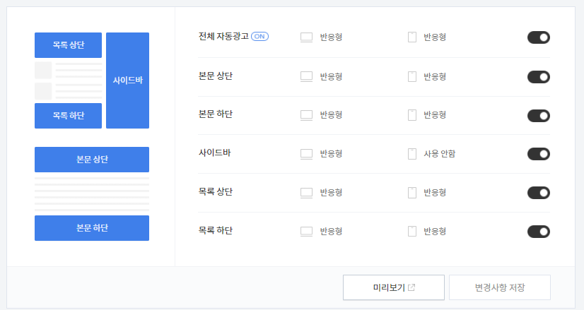 애드센스 역시 동일하게 사이드바를 설정해주면됩니다.