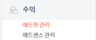 블로그 관리 -> 수익 -> 애드핏 관리로 들어갑니다.