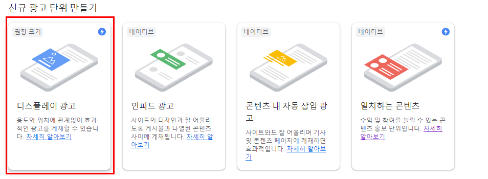 일단, 수익창출 허가를 받은 구글애드센스에서 디스플레이 광고에 들어가서