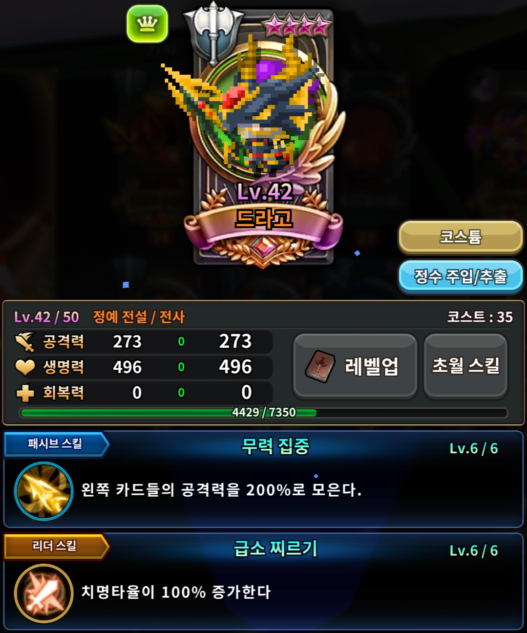 | 관트드(혼신) | 관우(혼신) | 트로이 | 드라고(혼신) | 딜 기대값 |