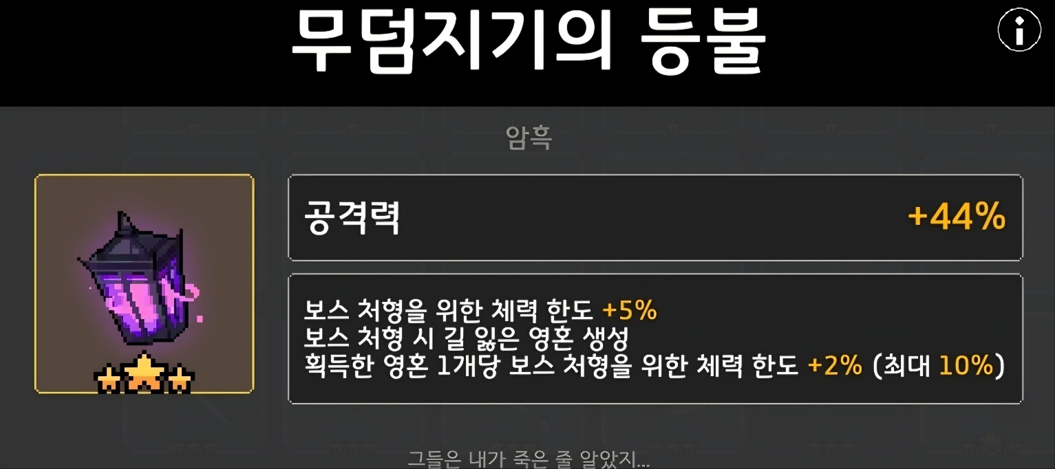 - ★ ★ 무덤지기의 등불 (공격력, 처형효과)